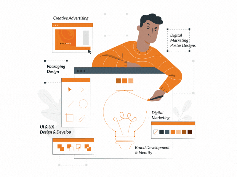 With our Blackantz Creatives Branding and creative services, we provide the following enrollment of services, often taking the help of additional attachments within the organization for a collaborative approach that ensures both: real and ethereal results, be it from a tasteful perspective or that of increasing ROI.